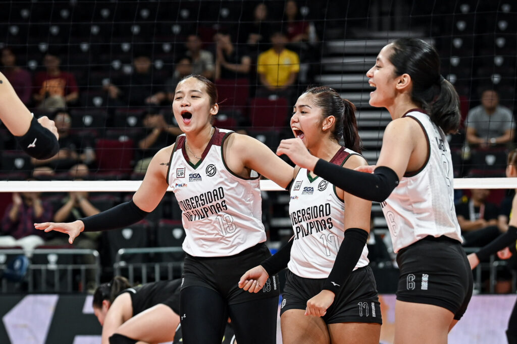 UP recovered in the third set, winning with a slim 2-point margin. They led by as much as 8 points during this set, but the gutsy Golden Tigresses made a run towards the end. Momentum once again shifted to UP after an emphatic kill block by one-and-done foreign student athlete Kassy Doering, which sent UP to match point. Senior hitter Irah Jaboneta’s down-the-line hit won the set for UP.